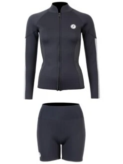 Two Bare Feet Unisex Perspective Full Zip 2.5mm Wetsuit Jacket & Hotpants Set (Black/Grey/Grey)